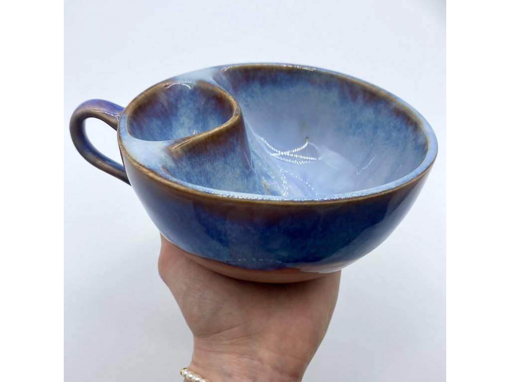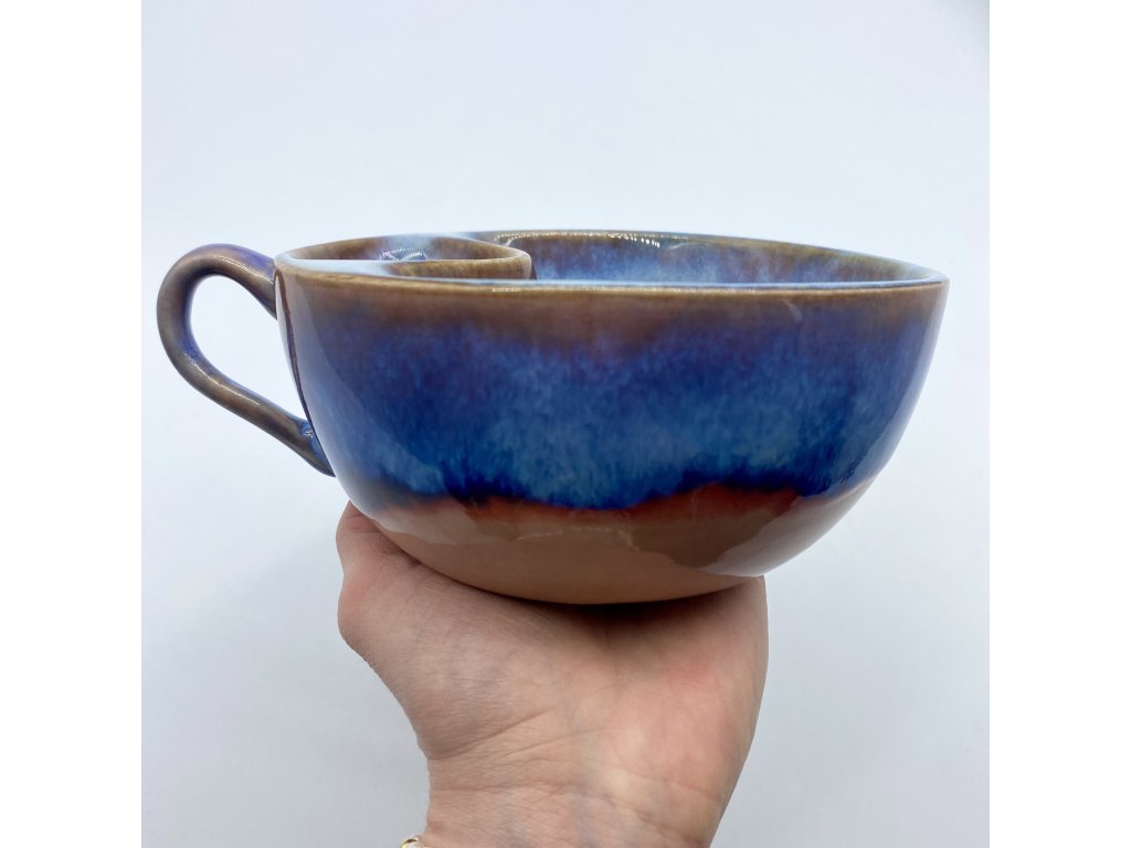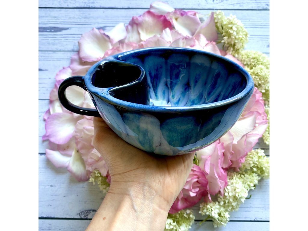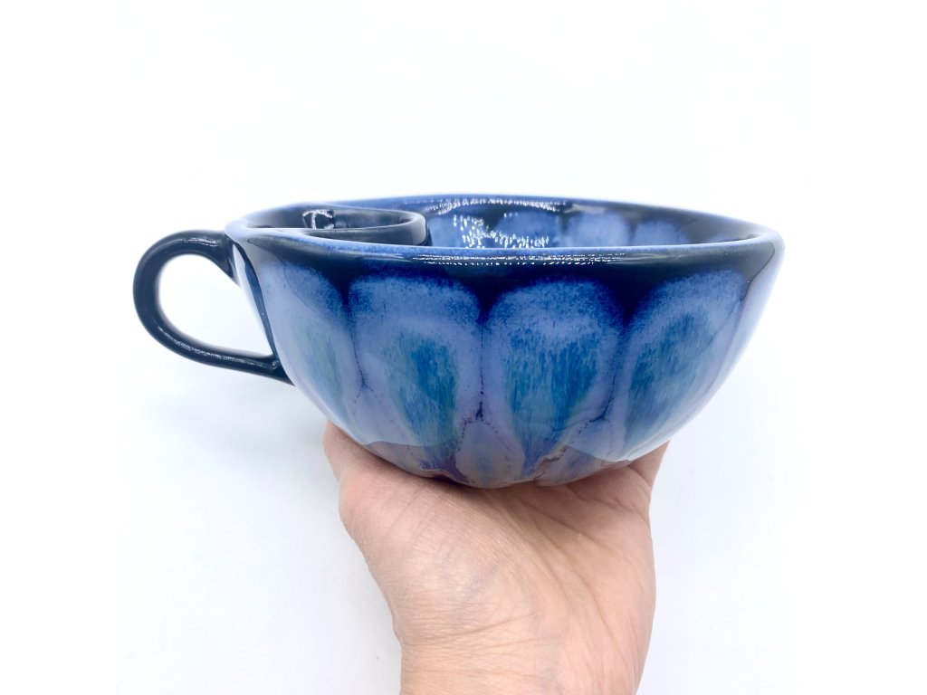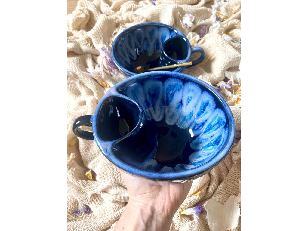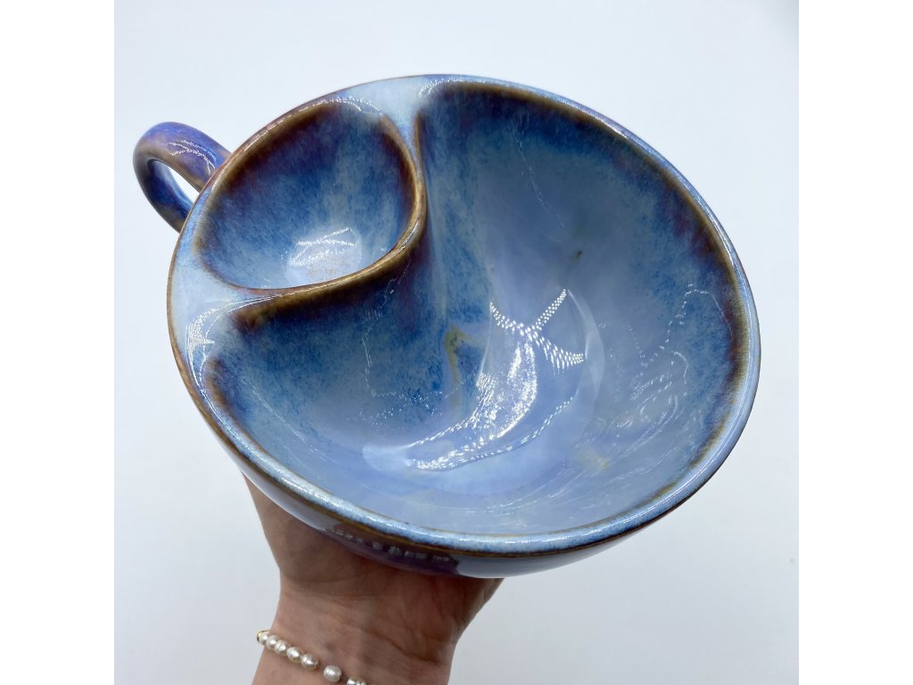 Dostupnost: Skladem Můžeme doručit do: 26.2.2026Hmotnost cca 0,3 kg Velikost - průměr s ouškem cca 16 cm Velikost - výška cca 6,5 cm Barva šedozelená glazura se stékanými malovanými efekty Tvar kapsička s dírkami na luhování hrubšího sypaného čaje Objem cca 300 ml -