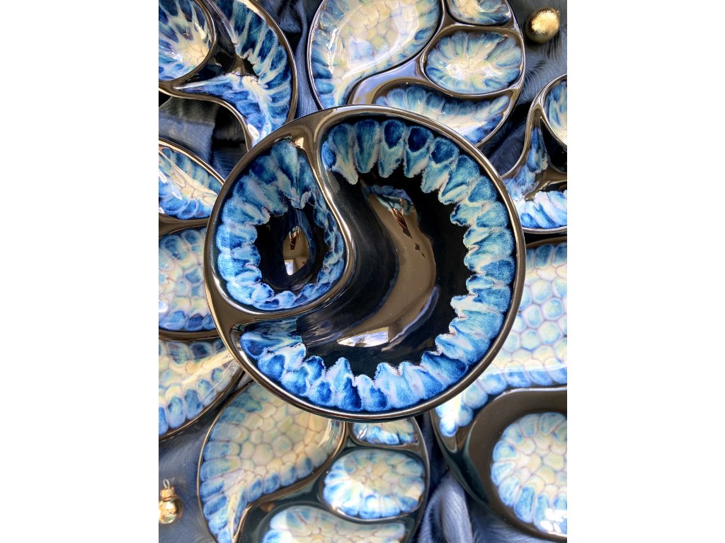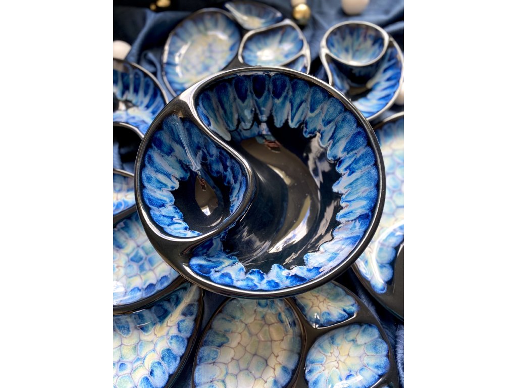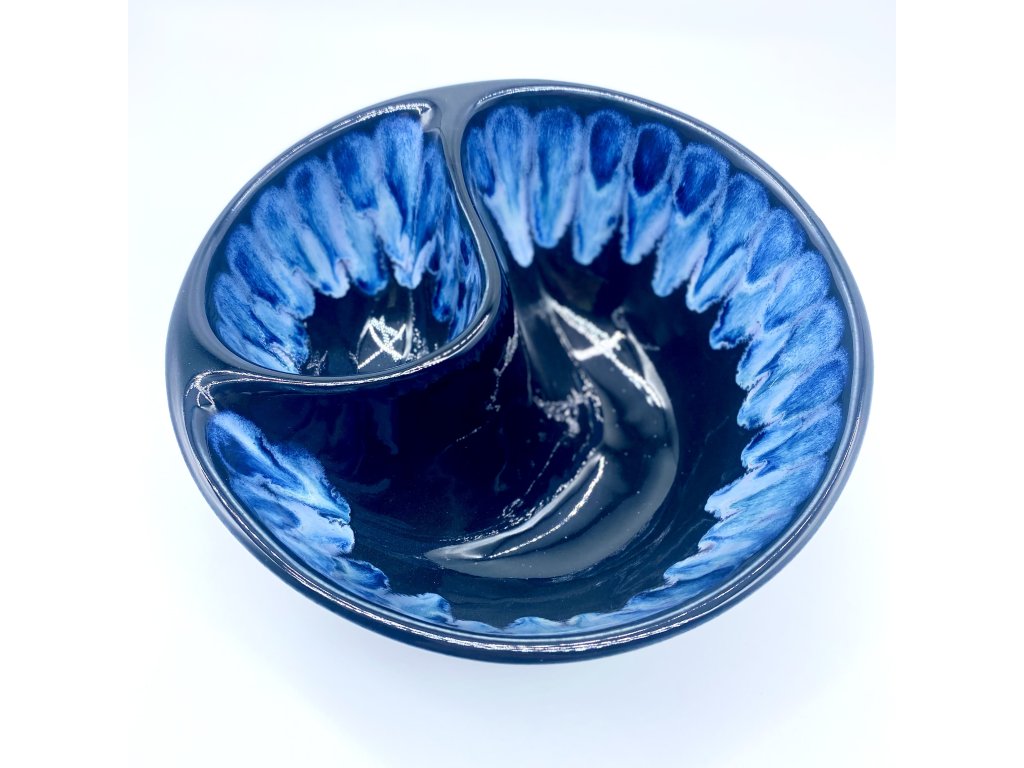 Můžeme doručit do: 1.12.2025Velikost - průměr cca 24 cm Velikost - výška cca 11 cm Barva tmavě modrá až černá s malovanými stékavými efekty Objem velká komůrka - 1 litr, malá - 300 ml